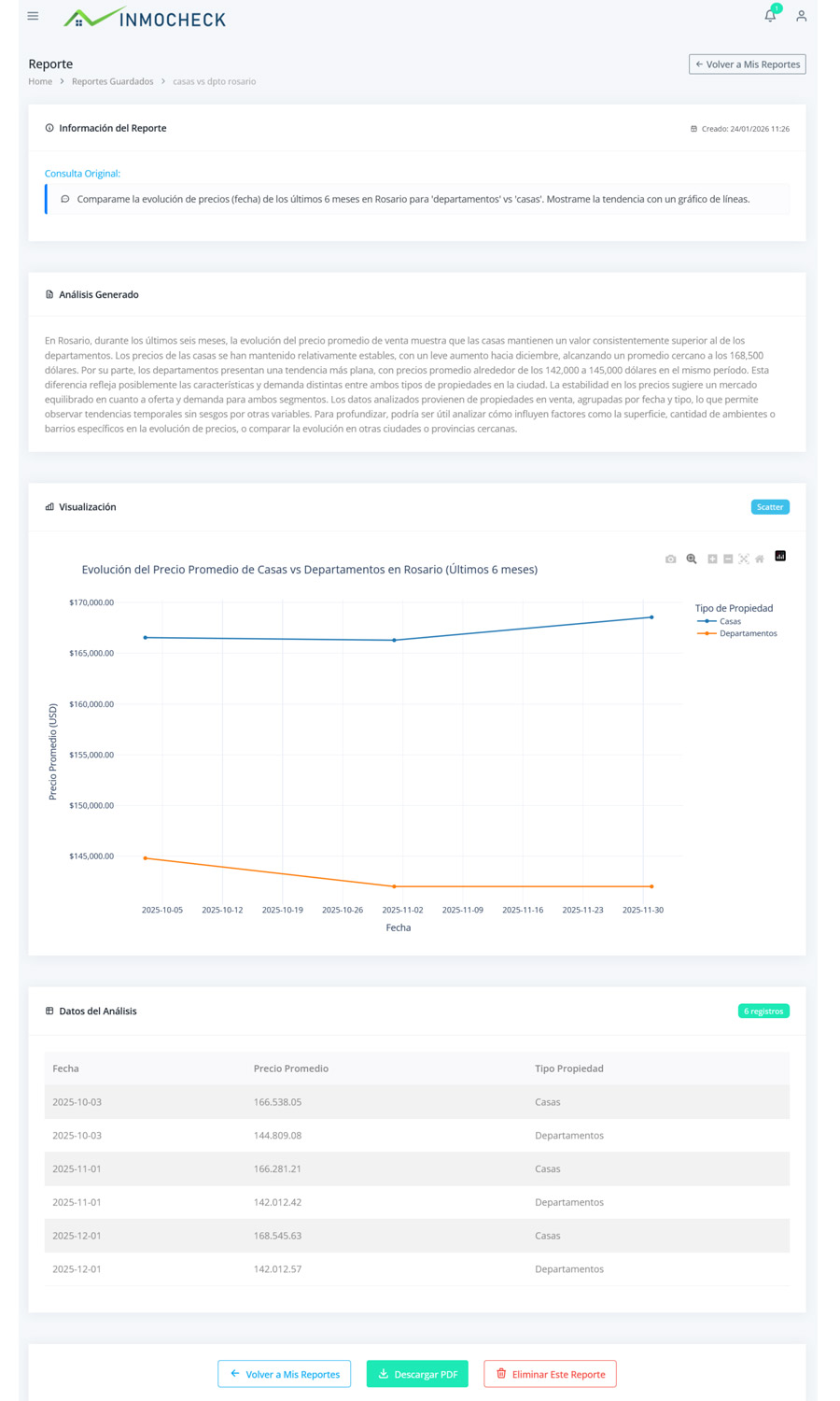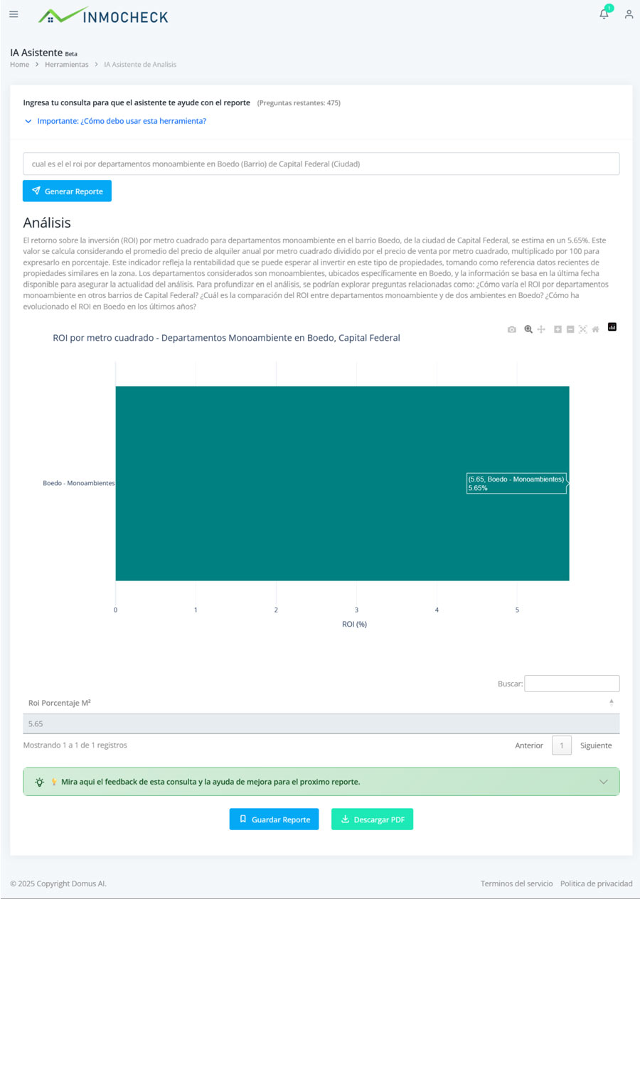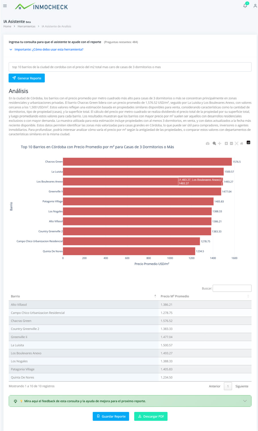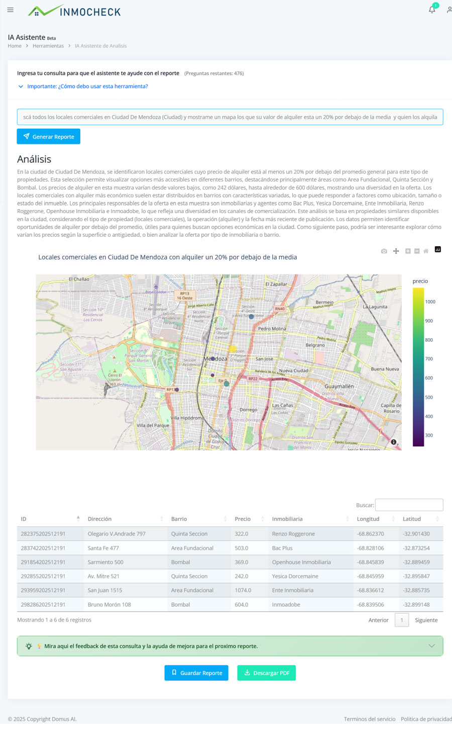 InmoCheck es la primera herramienta analítica con Inteligencia Artificial diseñada específicamente para el mercado inmobiliario argentino. Nuestro asistente con IA te permite hacer consultas con lenguaje natural y analizar el mercado en tiempo real con datos de propiedades a la venta y en alquiler de toda Argentina.